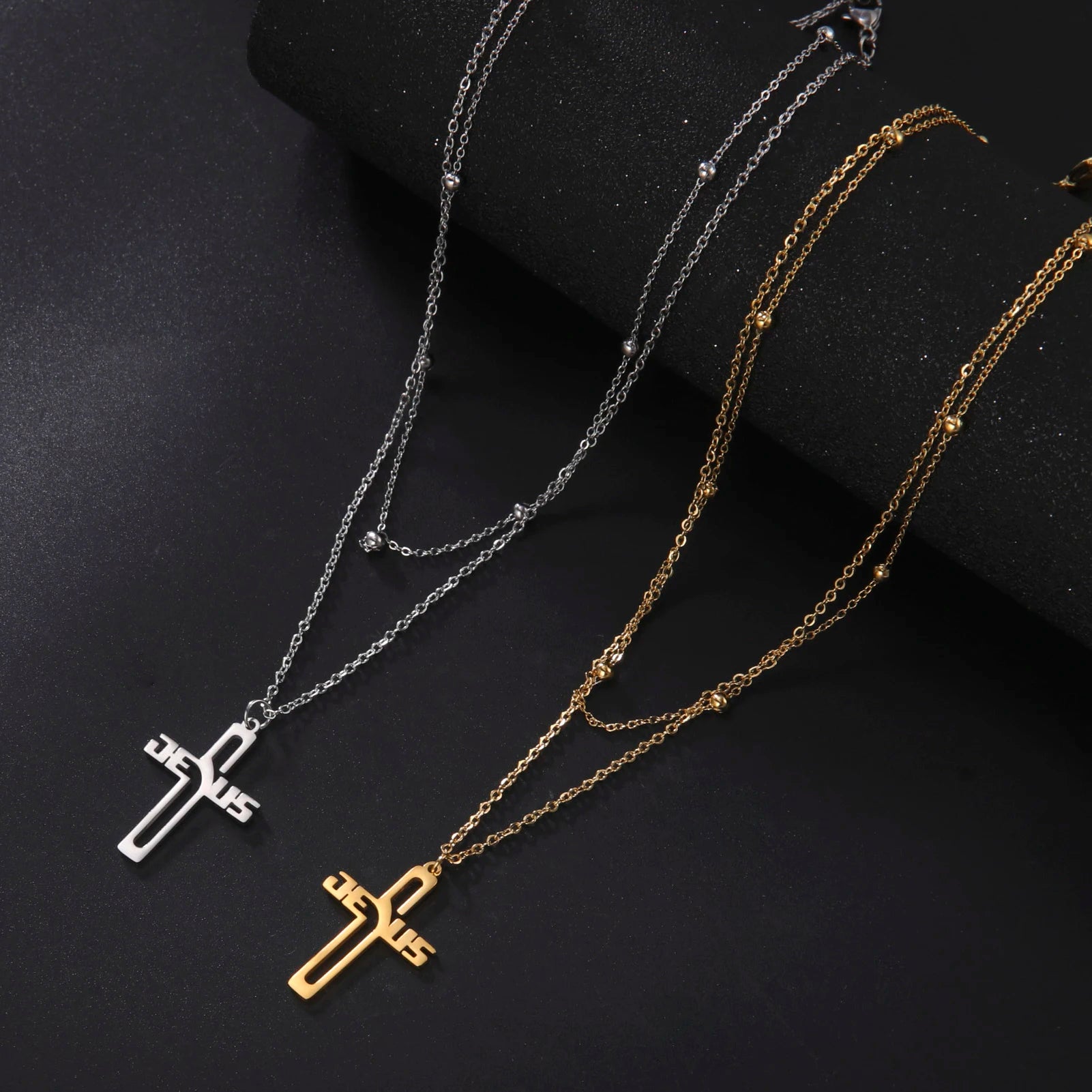 Name1: Jesus Cross Hollow Pendant Necklaces