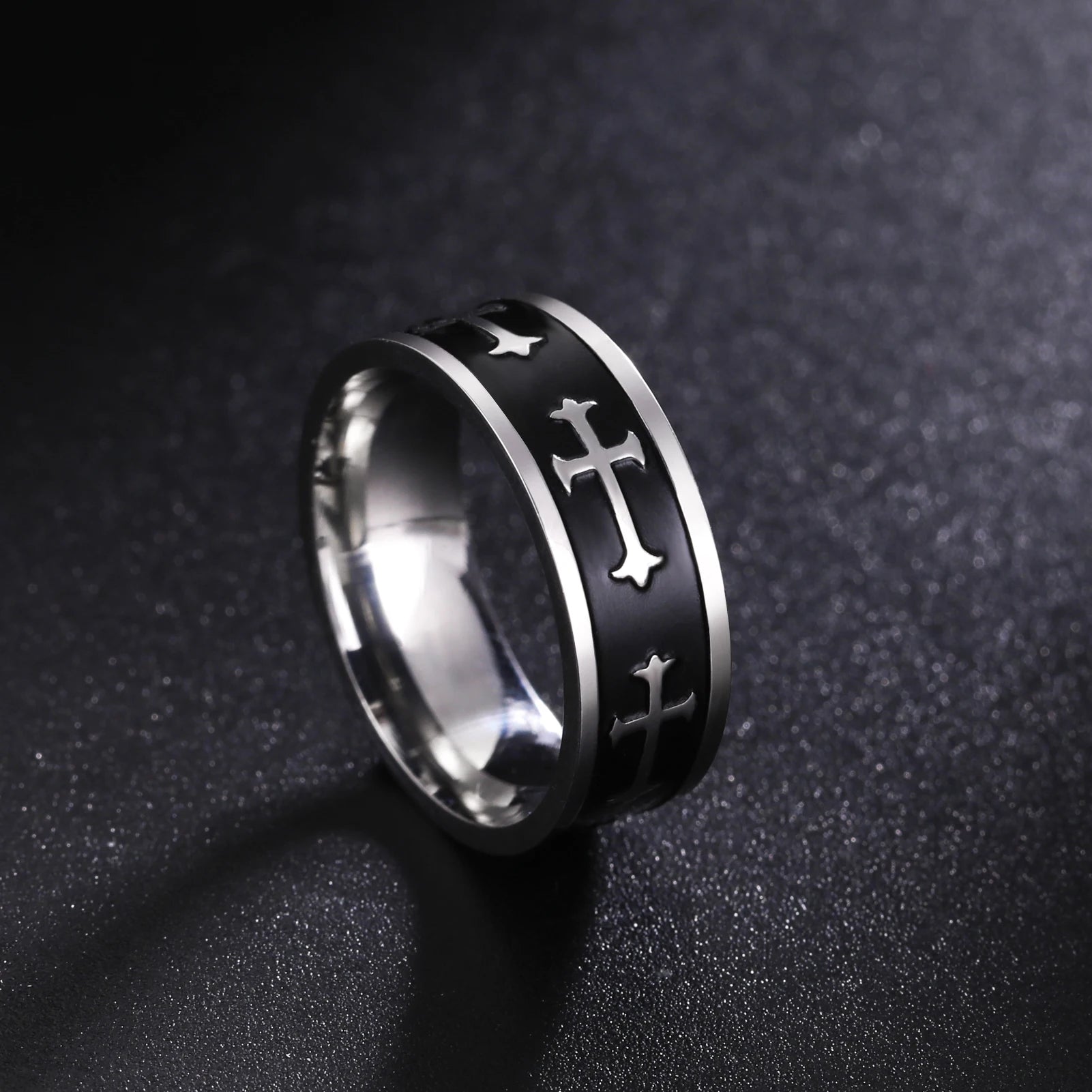 Jeshayuan 8MM Wide Jesus Cross Ring
